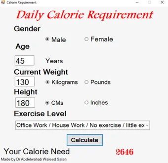 Calorie Requirement ist ein kostenloses Programm für Windows, das sich auf die Berechnung des individuellen Kalorienbedarfs konzentriert. Es gehört zur Kategorie Gesundheit und Fitness und bietet Nutzern die Möglichkeit, ihren täglichen Kalorienbedarf basierend auf verschiedenen Faktoren wie Geschlecht, Alter, Gewicht und Aktivitätslevel zu ermitteln. Die Benutzeroberfläche ist benutzerfreundlich gestaltet, sodass auch weniger technikaffine Nutzer leicht navigieren können.